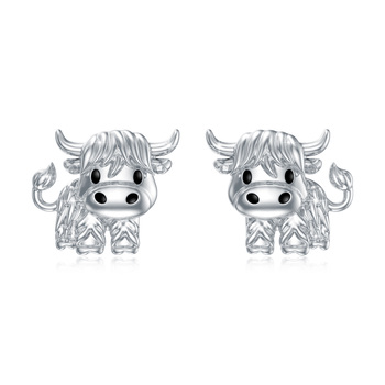 High Quality 925 Sterling Silver Rhodium Plated Animal Enamel Cute Highland Cow Stud Earrings