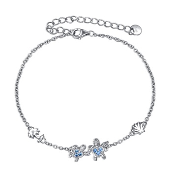 Fine Luxury Jewelry 925 Sterling Silver Blue Zircon Turtle Leg Chain Anklets for Women