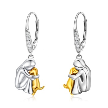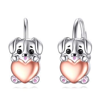 Hot Bán Chính Hãng 925 Sterling Silver Bạc Hai Mạ Mạ Dễ Thương Động Vật Con Chó Con Chó Con Tim Leverback Hoop Bông Tai Cho Phụ Nữ